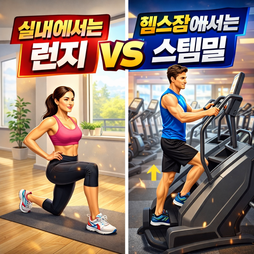 - 실내에서는 런지, 헬스장에서는 스텝밀을 활용하는 대체 운동도 좋습니다.